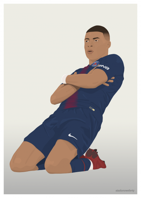 Plakat wielkiej gwiazdy klubu piłkarskiego PSG - Kylian Mbappe